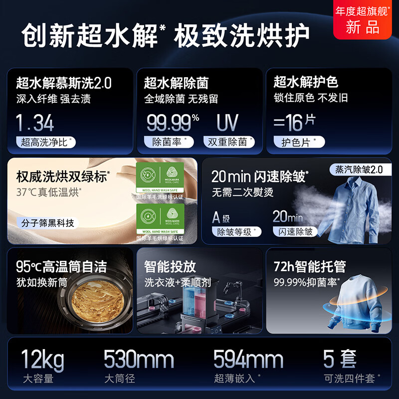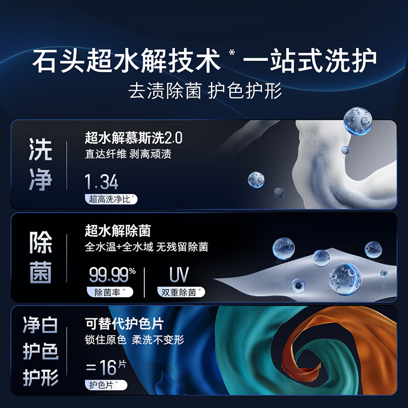 石头【重磅升级 超水解慕斯洗2.0】分子筛洗烘一体机Z1 Ultra 12KG大容量滚筒洗烘 黑曜石 XQGH120RR2D