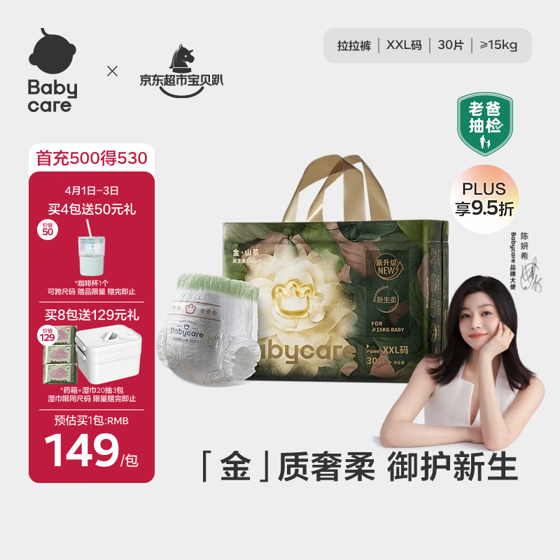 babycare金山茶花拉拉裤XXL30片(>15kg)婴儿尿不湿超薄透气新生柔花苞裤