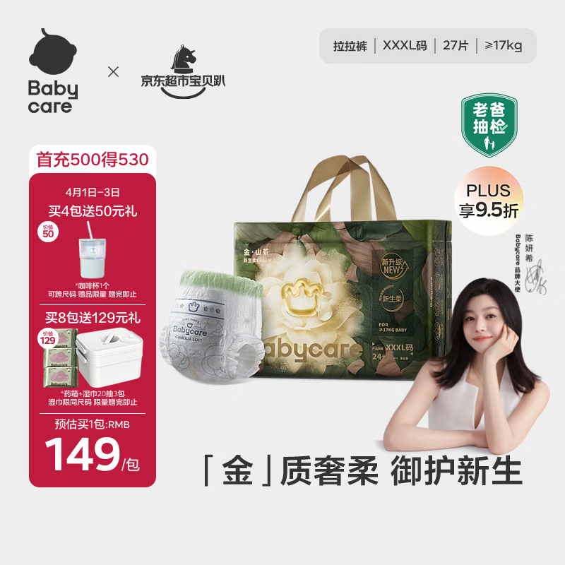babycare金山茶花拉拉裤XXXL24+3片(>17kg)婴儿尿不湿超薄透气轻柔花苞裤