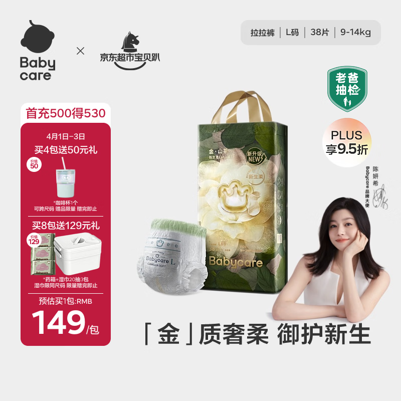 babycare金山茶花拉拉裤L38片(9-14kg)婴儿尿不湿超薄透气新生柔花苞裤