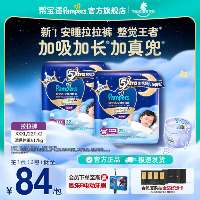 帮宝适【整觉王者】新安睡拉拉裤超薄透气安睡一整夜婴儿尿裤尿片尿不湿 安睡拉拉裤XXXL44片(≥17kg) 常规款