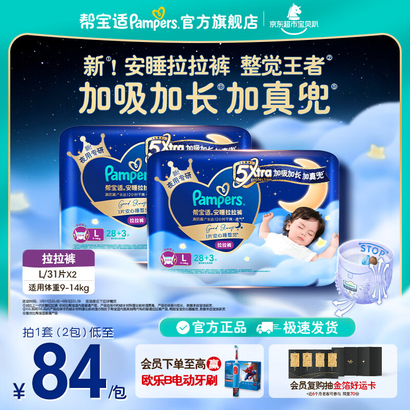 帮宝适【整觉王者】新安睡拉拉裤超薄透气安睡一整夜婴儿尿裤尿片尿不湿 安睡拉拉裤L62片(9-14kg) 常规款
