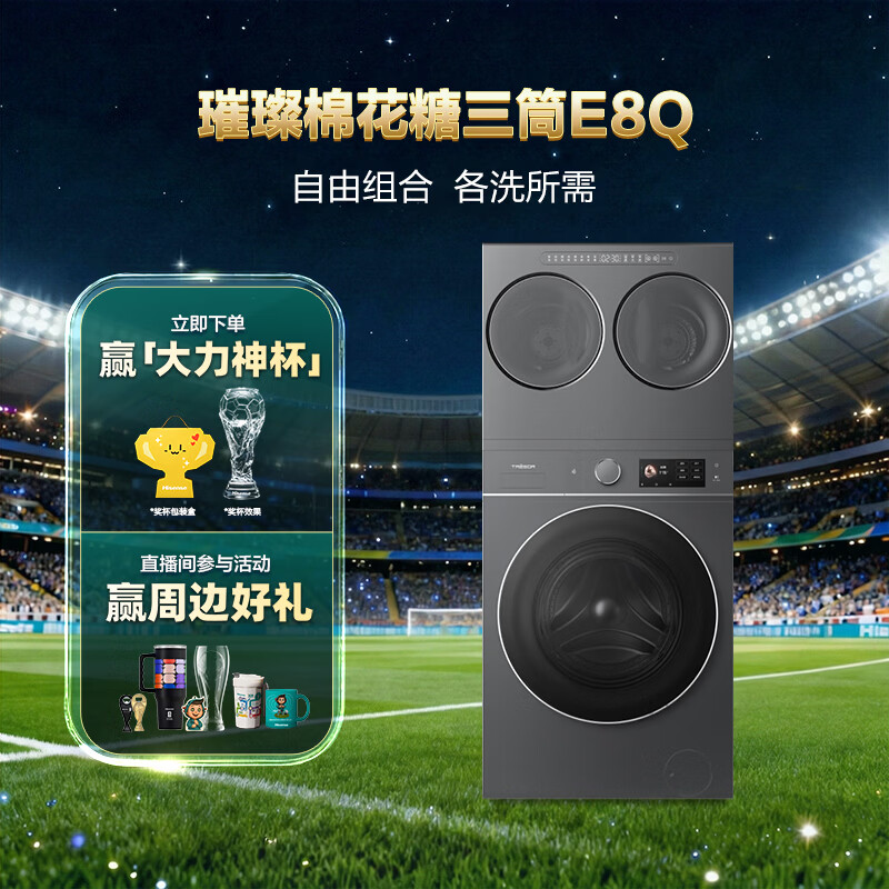 海信(Hisense)璀璨棉花糖热泵洗烘三筒洗衣机 分区洗全家筒活水健康自由组合 三桶WH130E8Q+WV20G-H以旧换新补贴