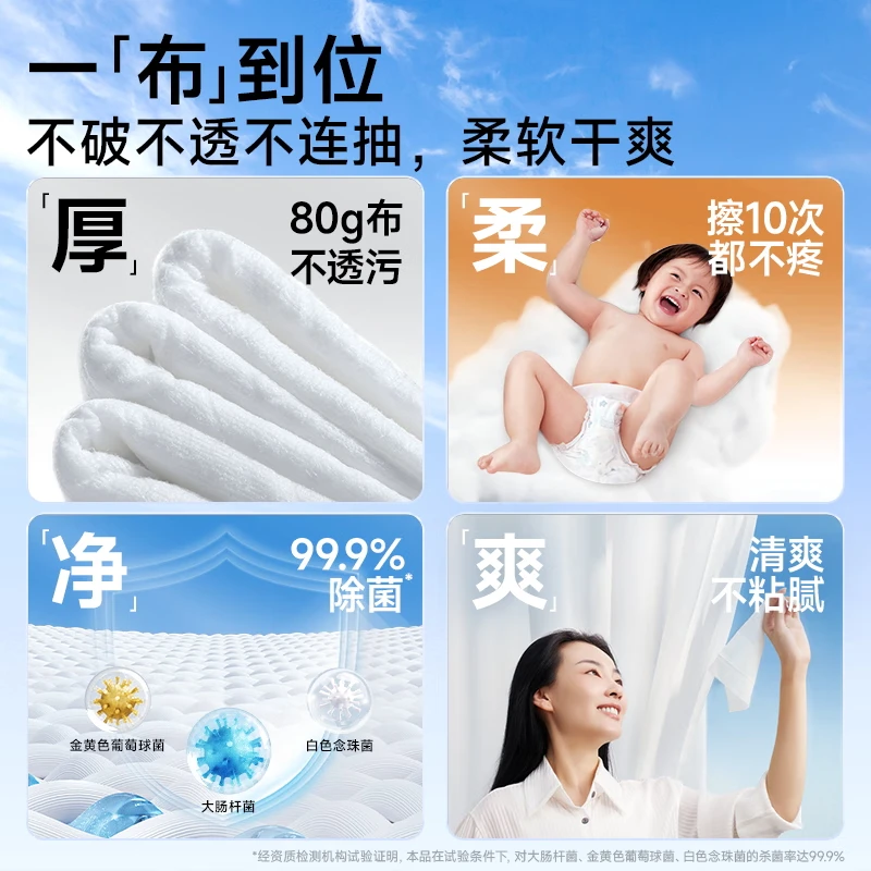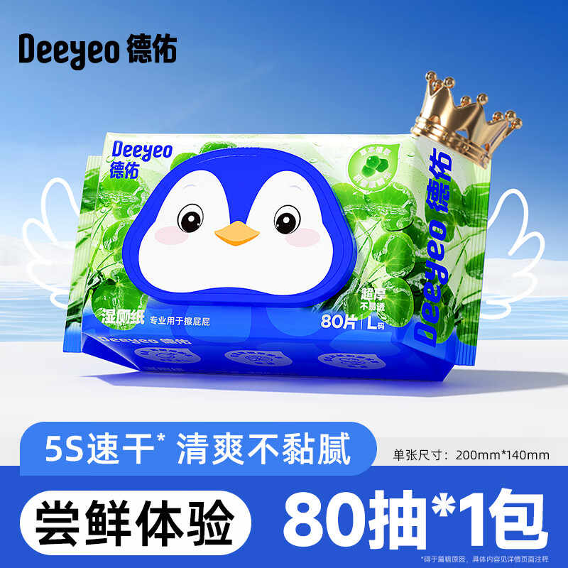 德佑积雪草湿厕纸80抽单包体验洁厕湿纸巾厕纸草本呵护擦屁屁柔厚升级