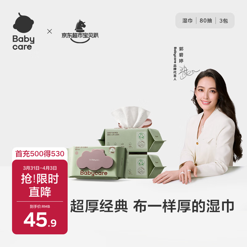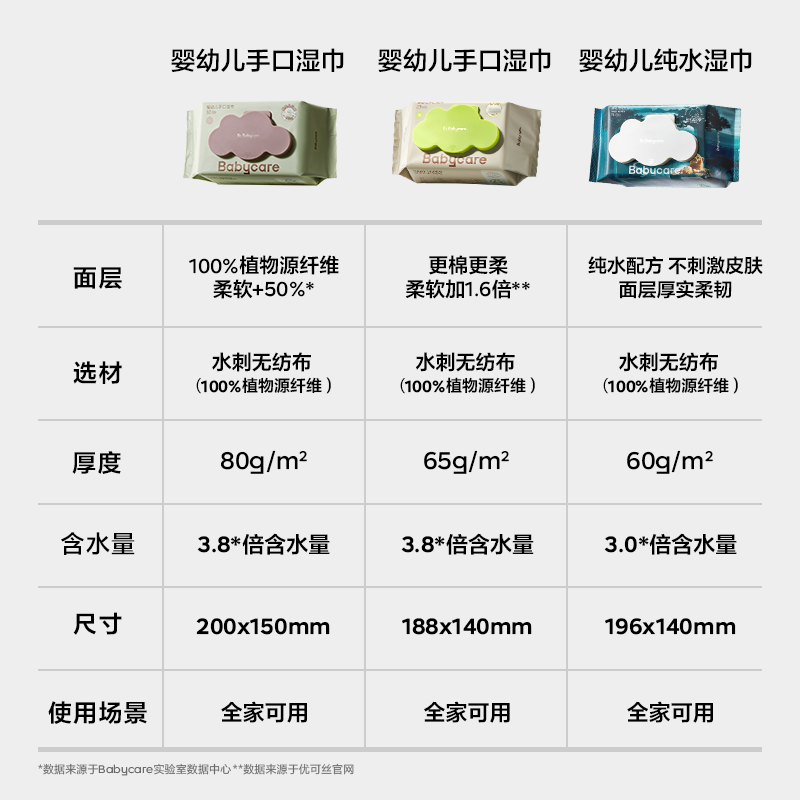 babycare婴儿手口湿巾新生儿湿纸巾加厚擦脸带盖大包6480紫盖湿巾80抽*3包