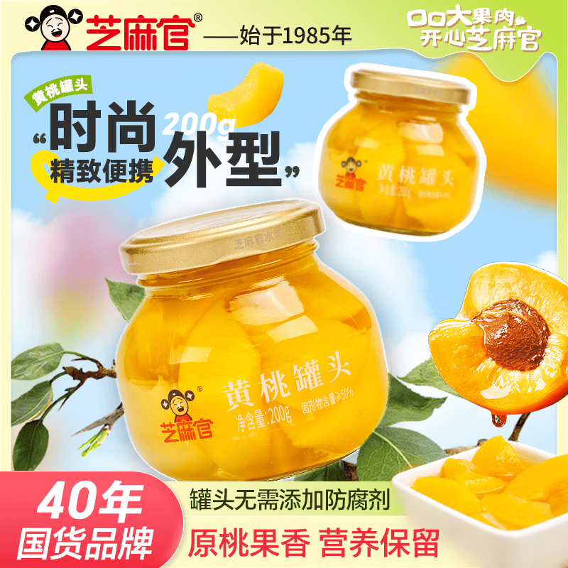芝麻官糖水黄桃罐头200g*4罐 水果罐头 休闲零食水果捞