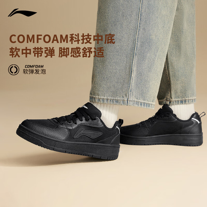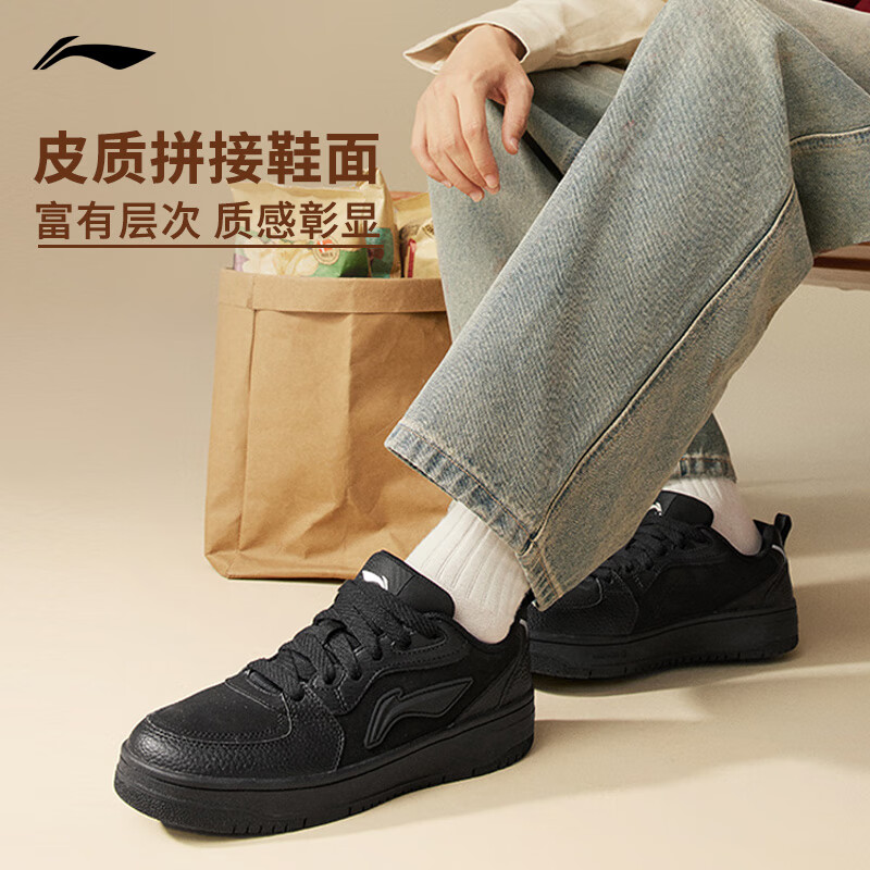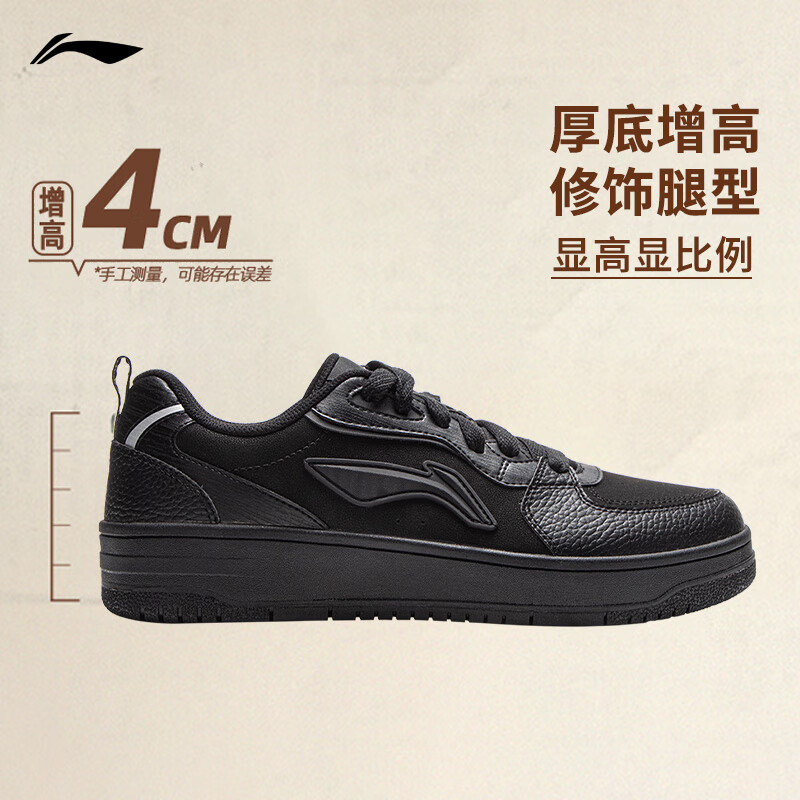 李宁天迹SOFT丨板鞋男鞋低帮小白鞋增高厚底回弹春夏季潮流复古运动鞋 黑色(341款)-5 40