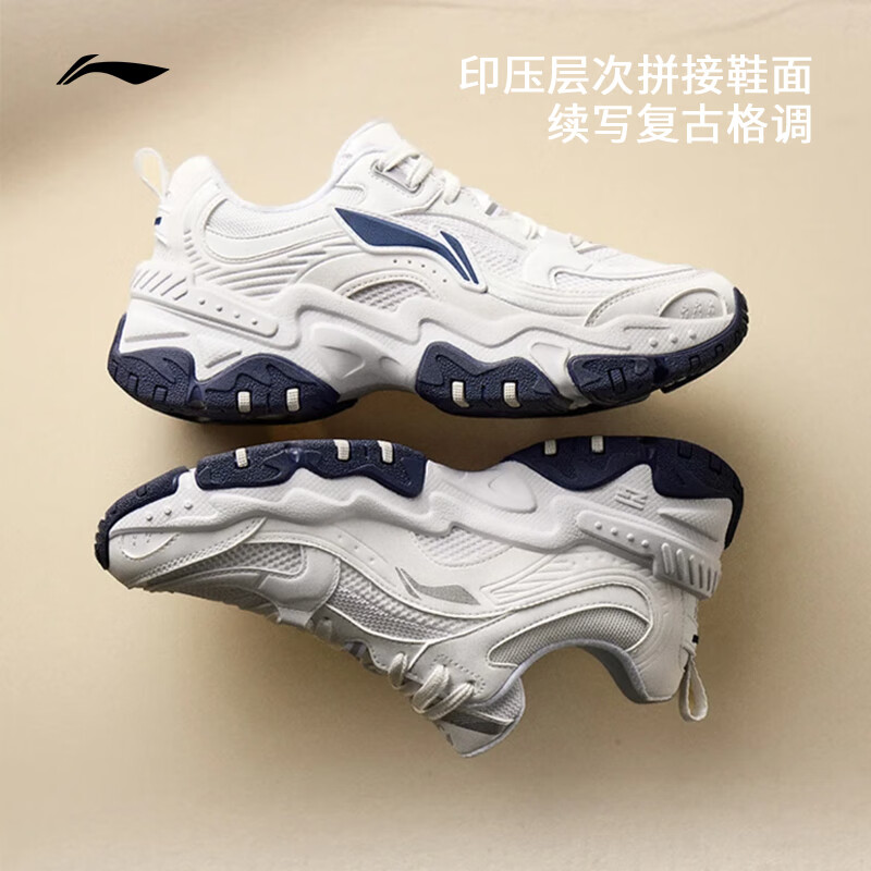 李宁红糖丨26马年休闲鞋女鞋通勤老爹鞋减震厚底鞋增高潮流百搭运动鞋 红糖大logo白/银色(128款)-6 37