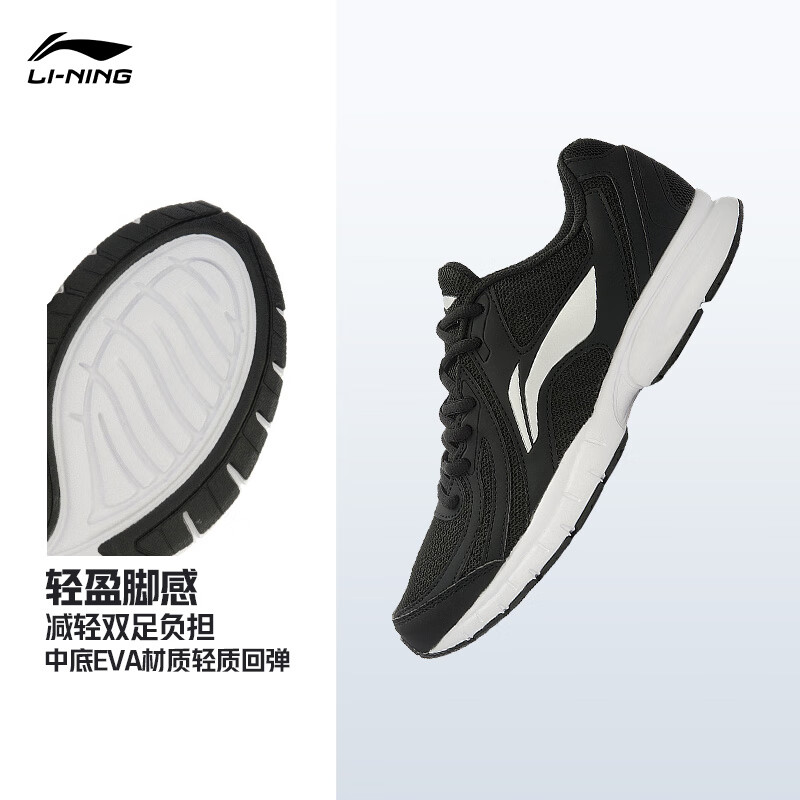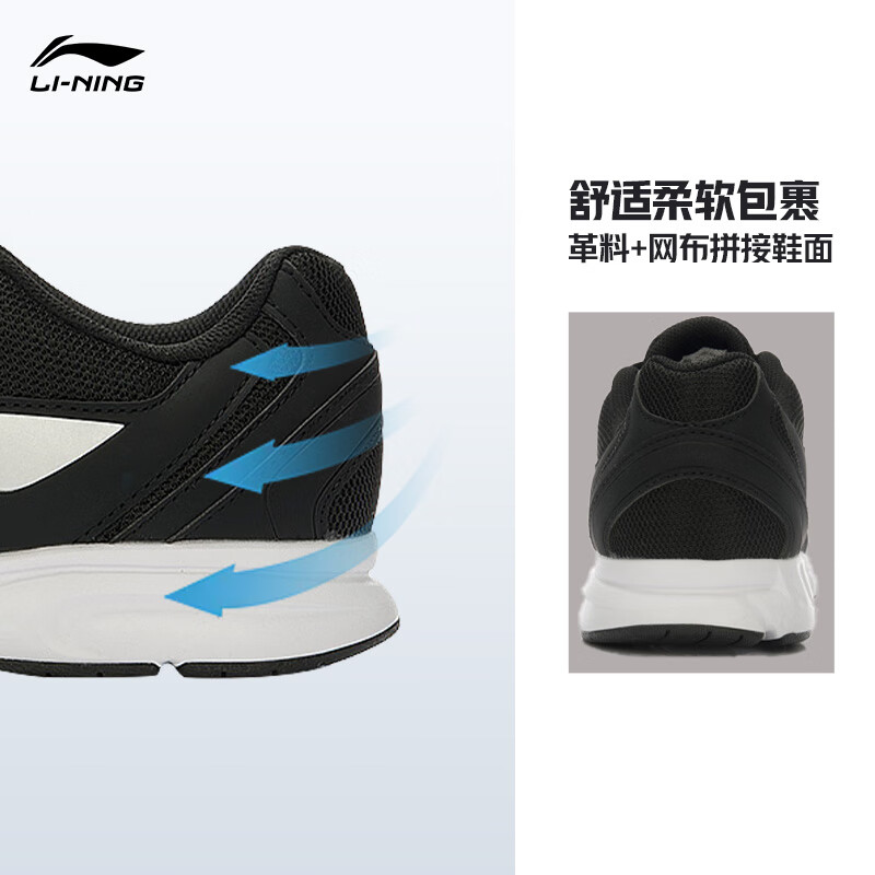 李宁运动鞋男鞋轻便透气网面拼接缓震跑步鞋黑色低帮软底休闲慢跑鞋 【透气网面】黑色/银色009款)-1 43