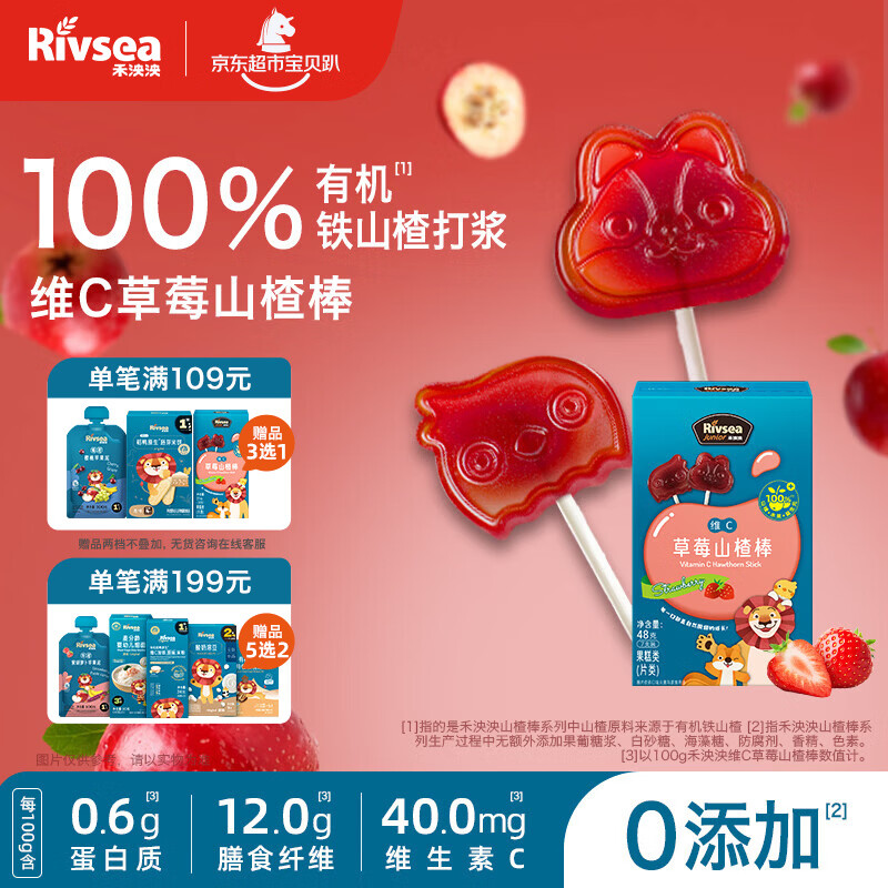 禾泱泱维C草莓山楂棒48g儿童宝宝零食富含膳食纤维水果条