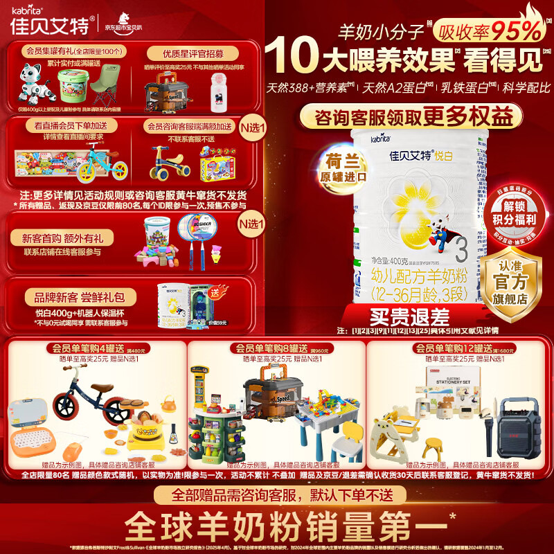 佳贝艾特(Kabrita)新国标婴儿羊奶粉 3段(1-3岁)悦白400g荷兰原装进口