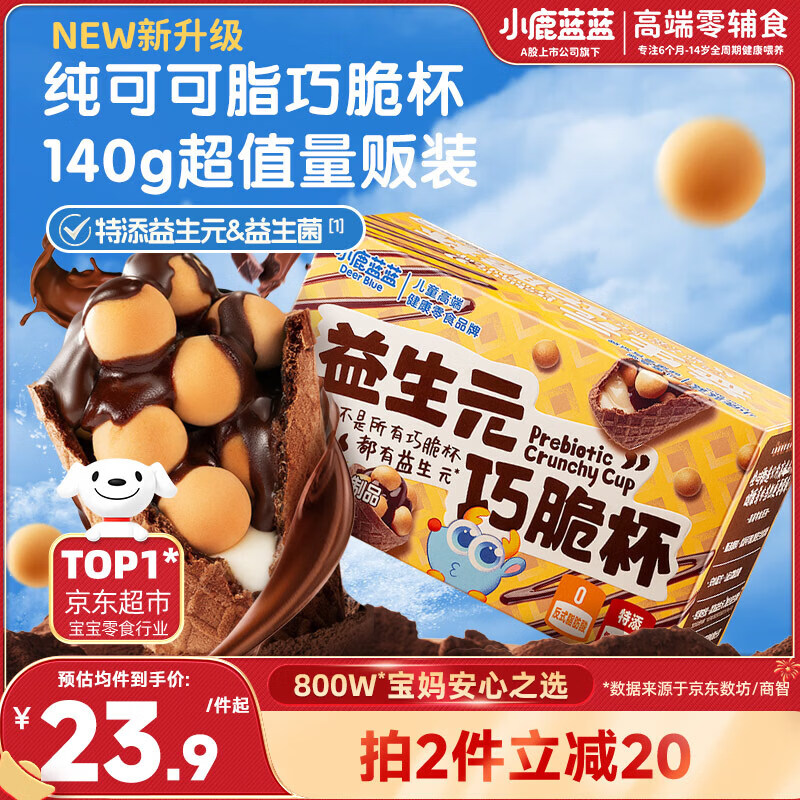 小鹿蓝蓝益生元巧脆星球杯140g纯可可脂宝宝零食巧克力磨牙棒饼干
