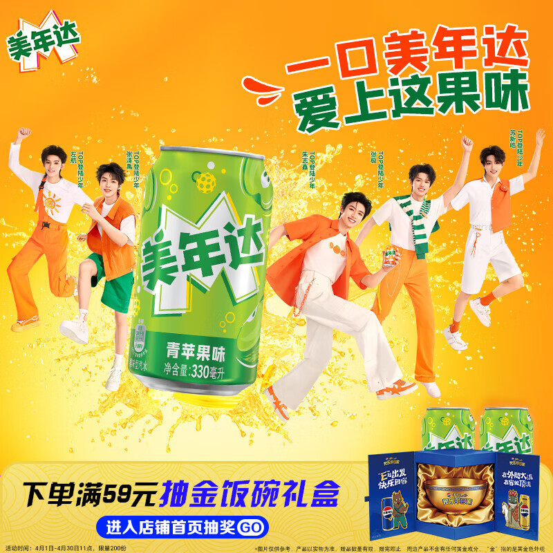 百事可乐美年达X蛋仔派对 青苹果味汽水碳酸饮料330ml*24听 新老包装随机