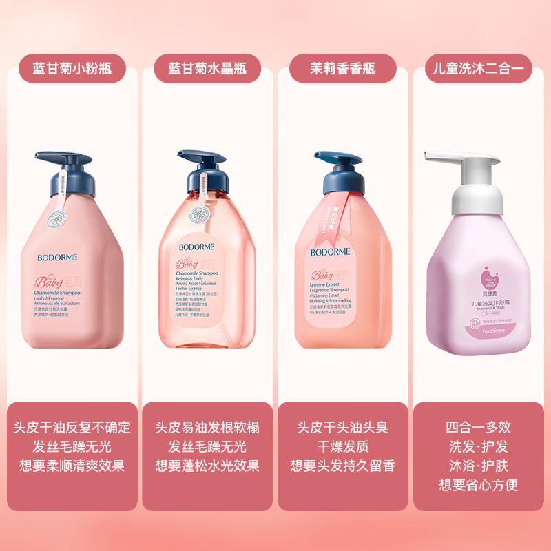 贝德美蓝甘菊儿童洗发水 3-6-12-15岁 无硅油弱酸性 柔顺控油 335ml
