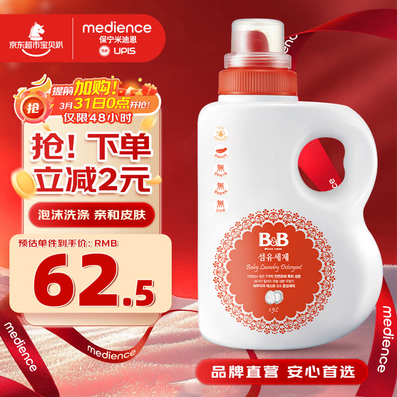 保宁(B&B)婴幼儿洗衣液宝宝专用可手洗新生儿内衣内裤洗衣液桶装【3斤装】