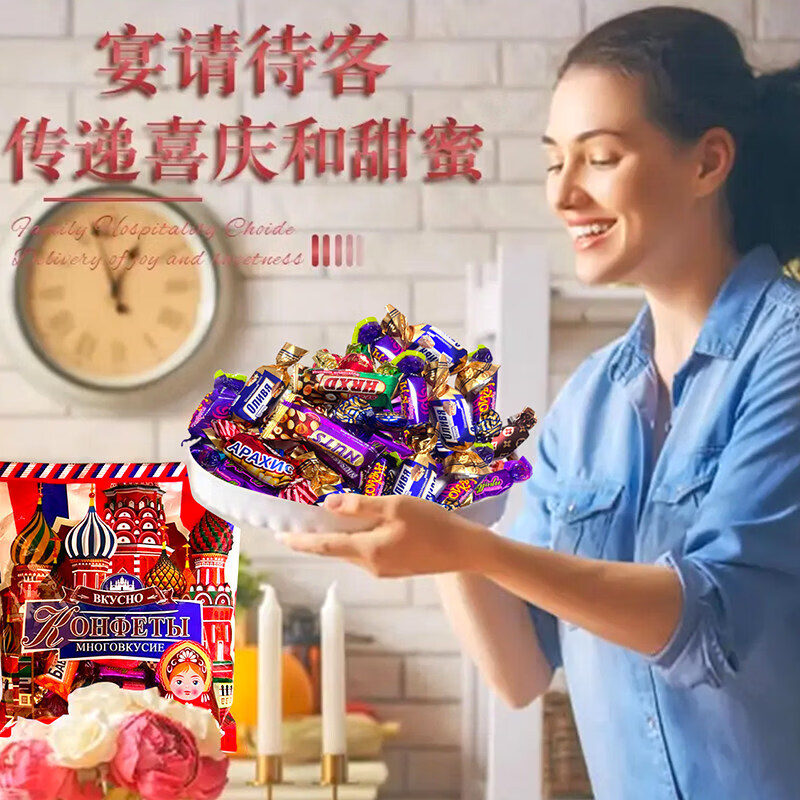 俄罗斯风味巧克力糖果500g混合紫皮糖儿童小零食喜糖礼品年货礼物 俄罗斯风味糖果500g*1袋【买半斤送半斤】】