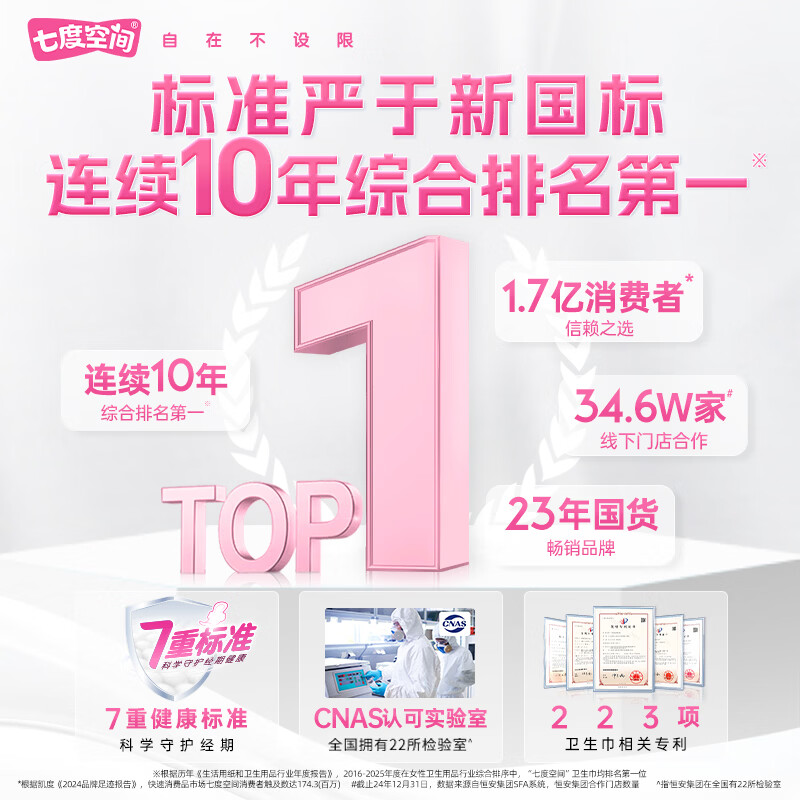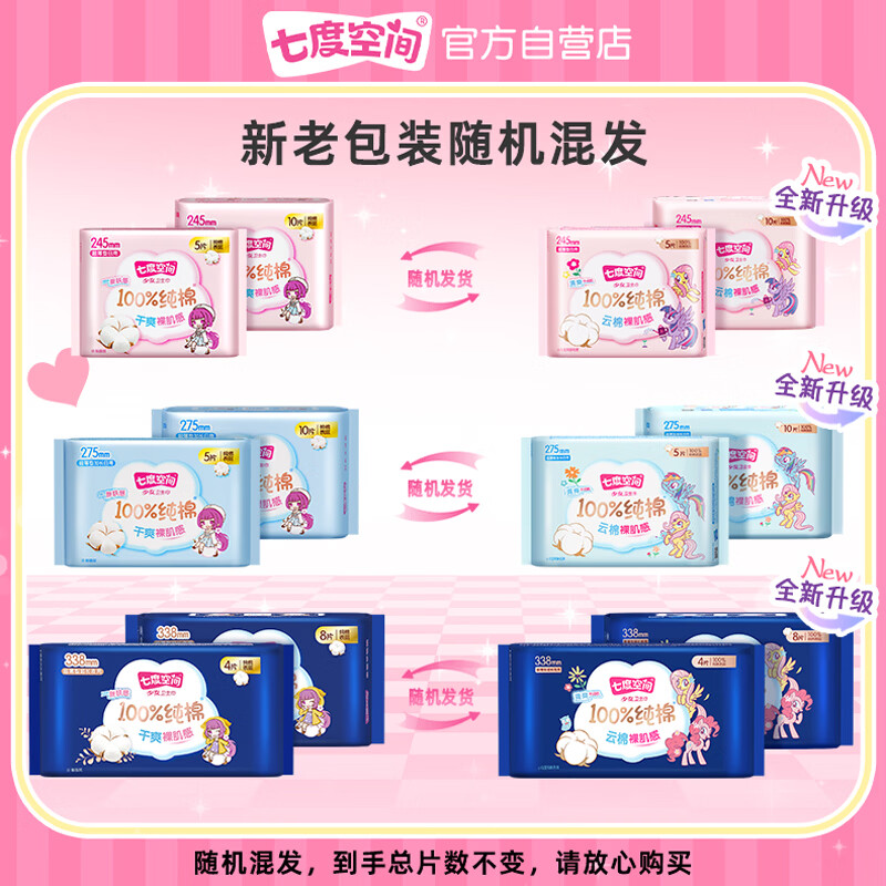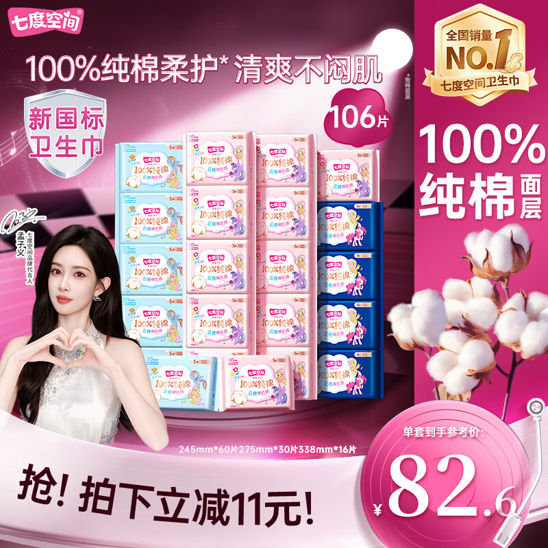 七度空间少女超薄透气100%纯棉亲肤106片日夜组合卫生巾【新国标认证】
