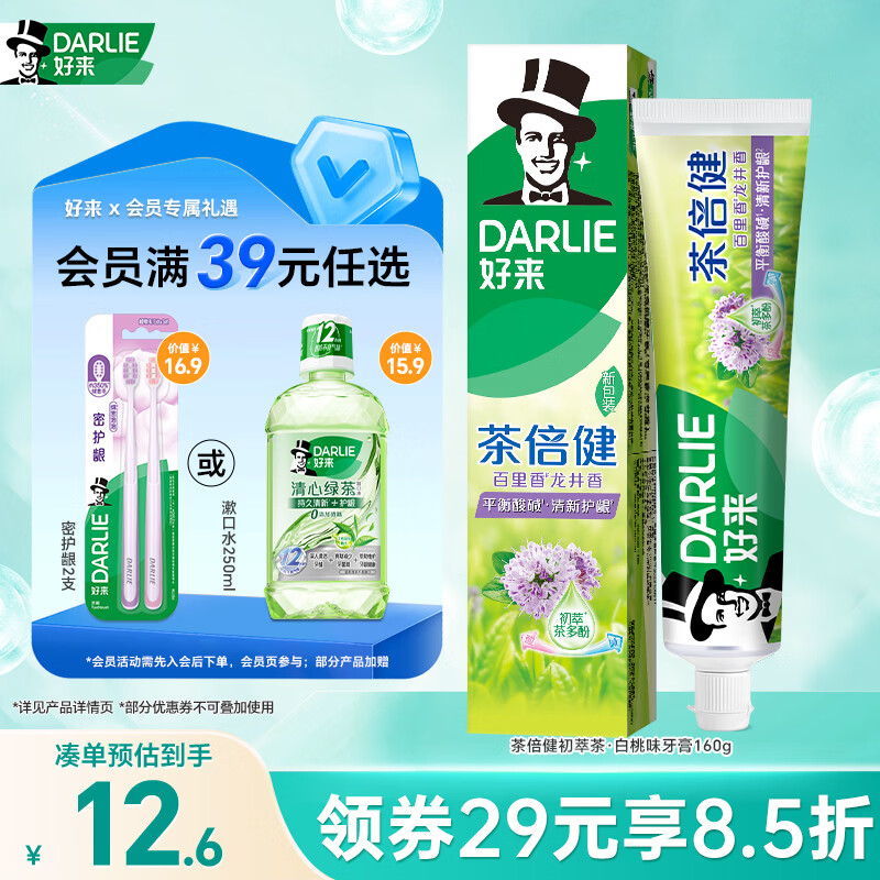 好来(DARLIE)(原黑人)茶倍健百里香龙井牙膏清新口气健齿190g新旧包装随机