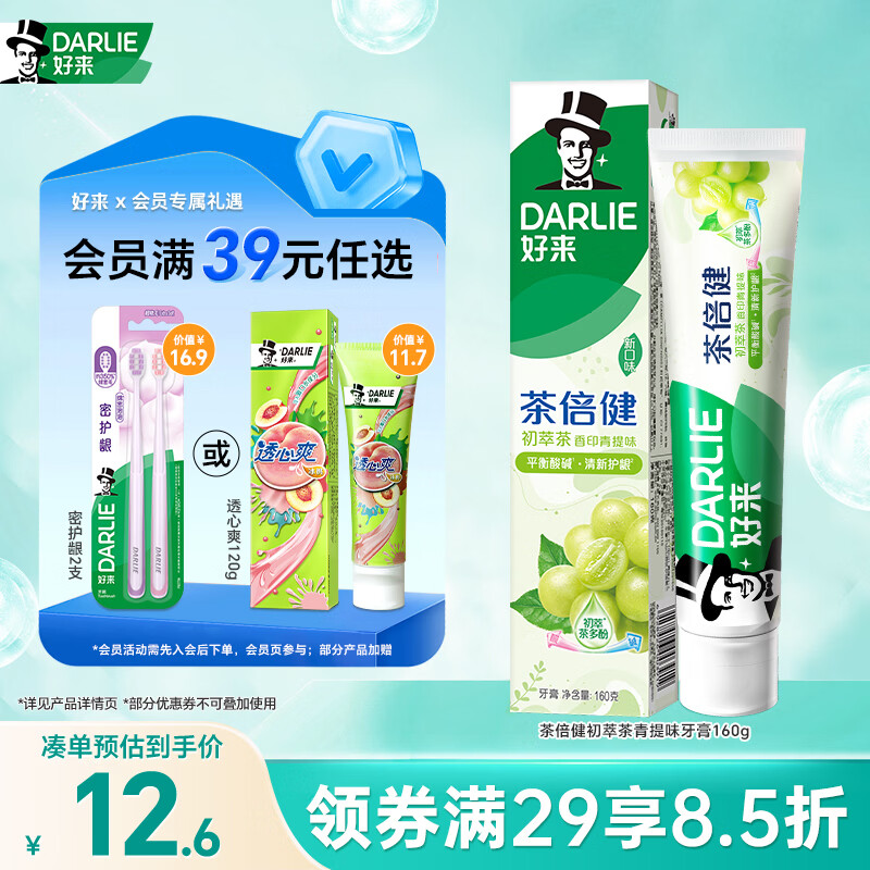 好来(DARLIE)(原黑人)茶倍健初萃茶青提味牙膏160g平衡口腔酸碱新旧包装随机