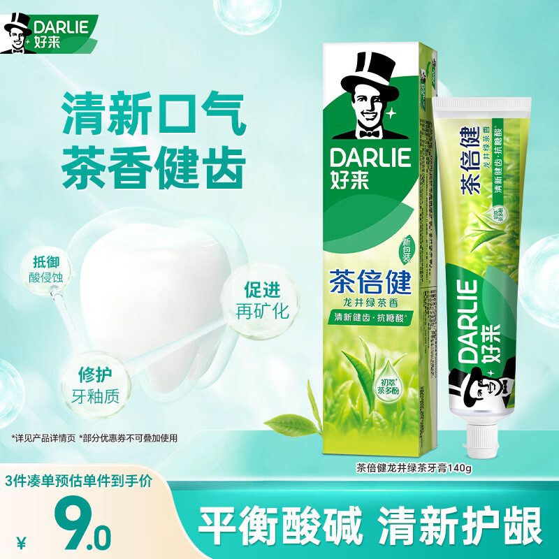 好来(DARLIE)(原黑人)茶倍健龙井绿茶牙膏清新口气改善口腔问题140g新旧包装