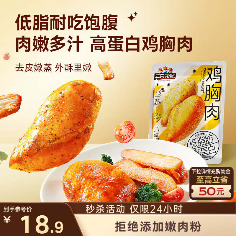 三只松鼠鸡胸肉550g/袋高蛋白即食健身减代餐速食鸡胸脯肉休闲零食