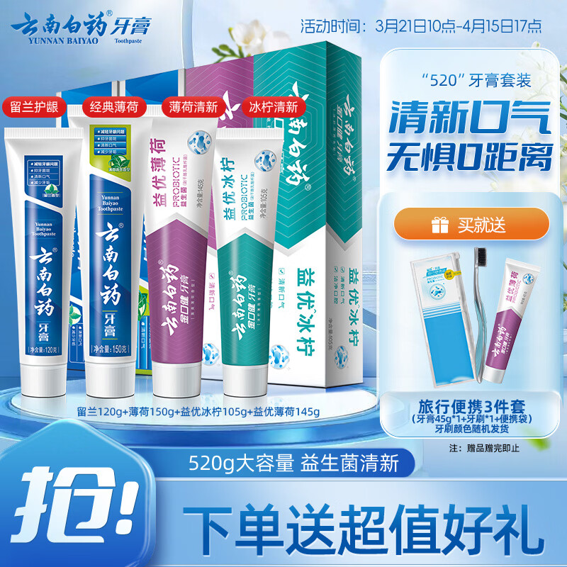 云南白药牙膏益生菌系列520套装 健齿护龈清新口气 洁净口腔4支装520g