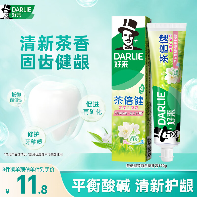 好来(DARLIE)(原黑人)茶倍健茉莉白茶牙膏清新口气健齿护龈190g新旧包装随机