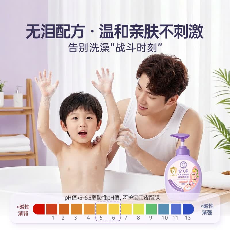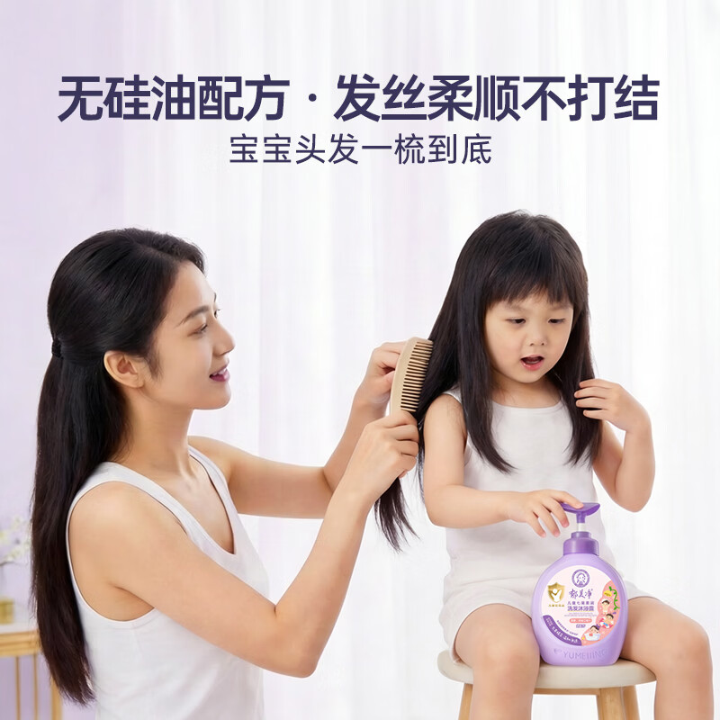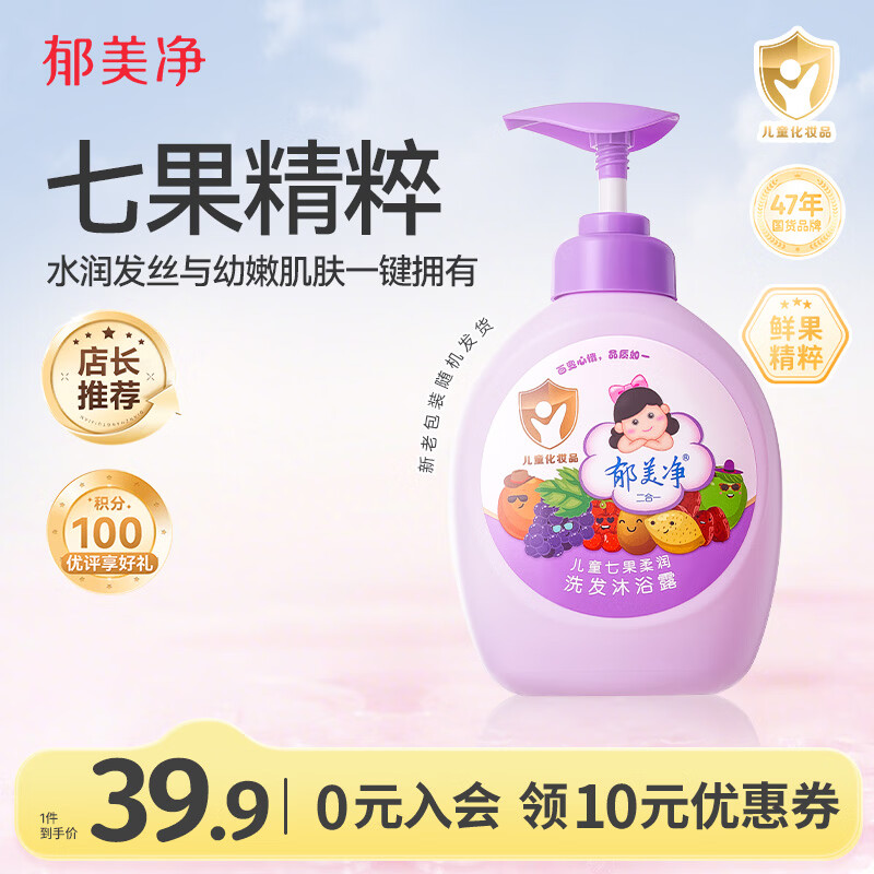 郁美净鲜奶七果儿童沐浴露洗发水二合一550g无硅油宝宝沐浴柔顺洗发水