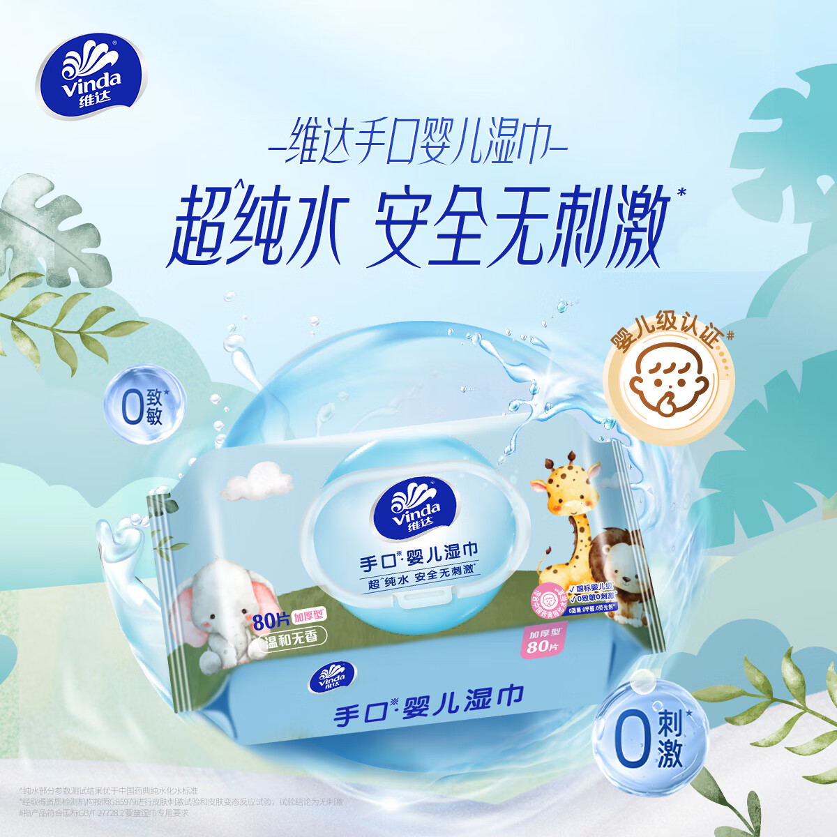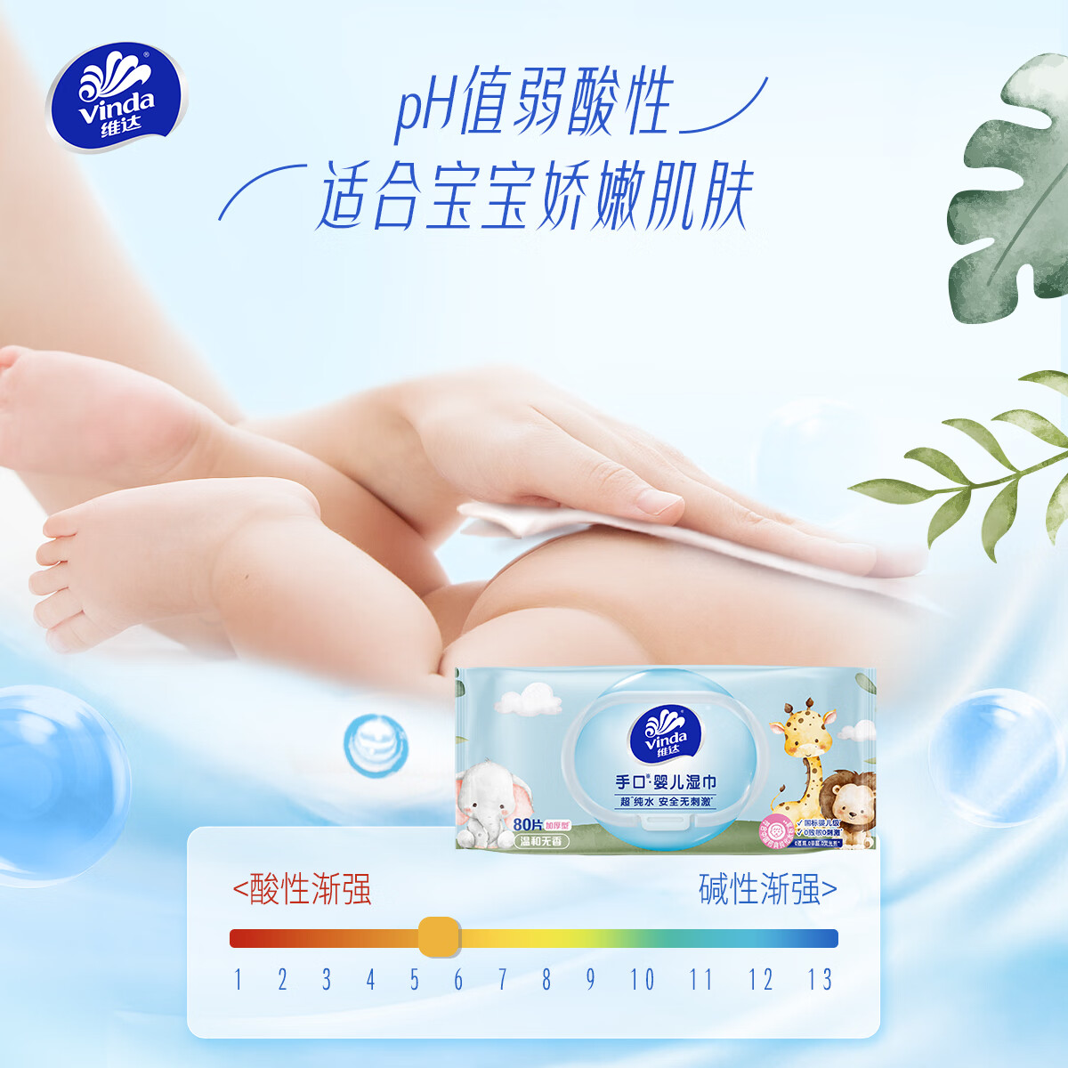 维达(Vinda)婴儿手口湿巾80片*4包新生儿湿纸巾婴儿湿巾手口屁屁专用湿巾大包