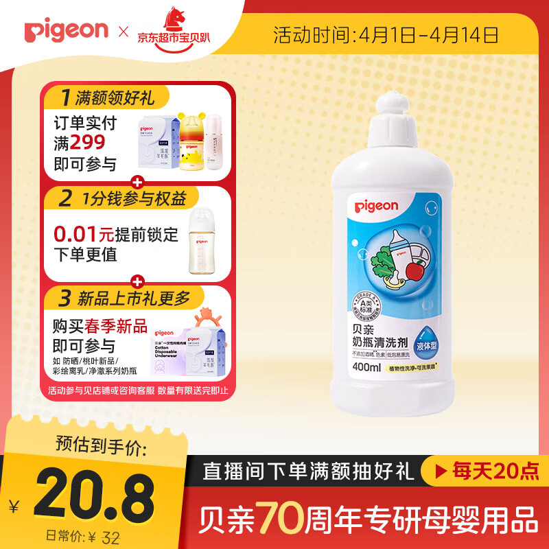 贝亲(Pigeon)奶瓶清洗剂婴儿专用奶嘴玩具果蔬清洗剂清洁剂洗洁精 400ml MA26
