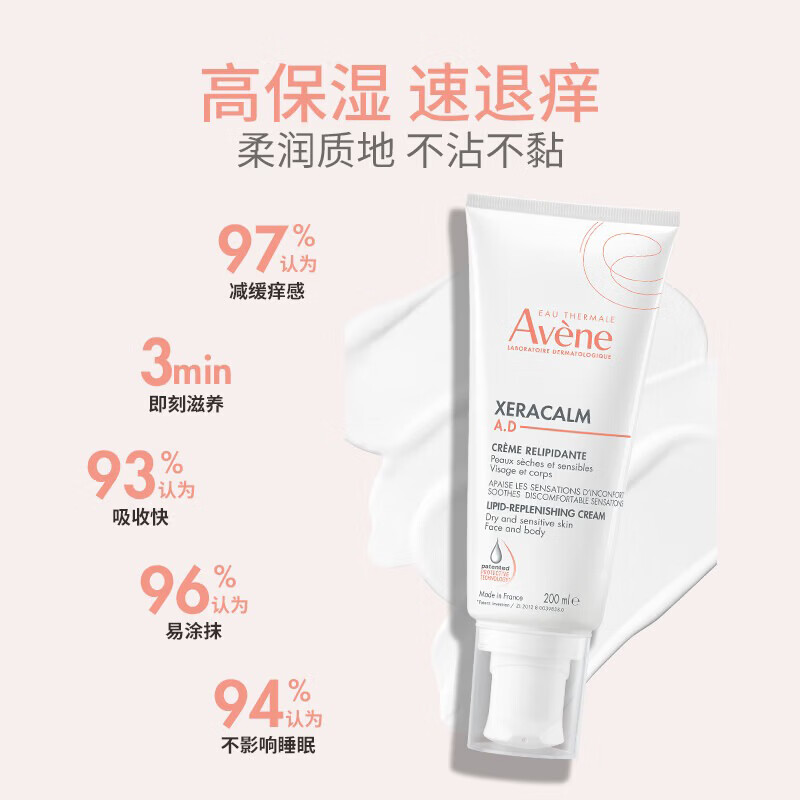 雅漾(Avene)三重专研舒缓霜200ml AD霜保湿滋润舒缓干燥止痒敏肌身体乳润肤乳