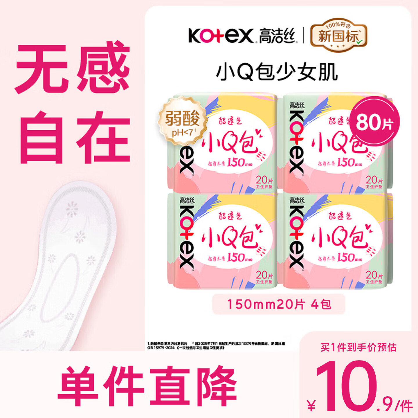高洁丝护垫小Q包超薄透气亲肤日用迷你卫生巾姨妈巾无护翼 小Q包护垫 150mm 80片