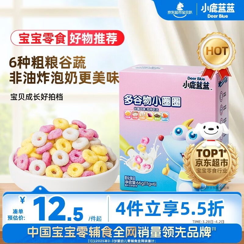 小鹿蓝蓝宝宝谷物圈 66g宝宝零食6种粗粮谷蔬儿童手指饼干零食