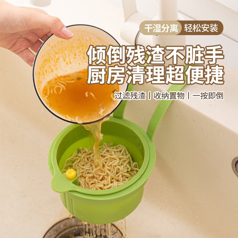 残渣不脏手!可挂式水槽沥水篮家用厨房水槽分离食物残渣过滤篮 沥水挂随机色 一个装