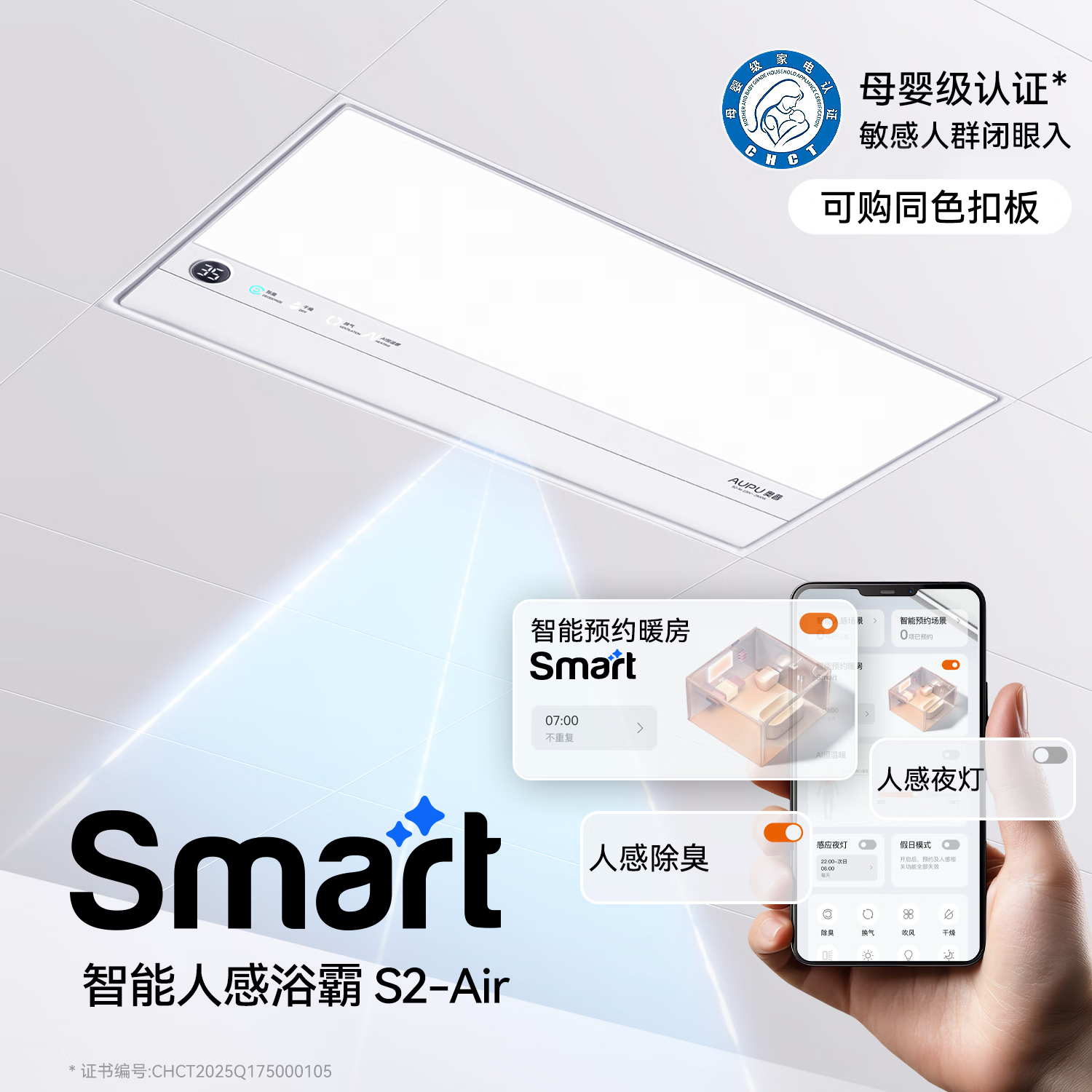 奥普智能浴霸焕新Smart系列AI人感恒温除臭暖风换气多合一S2-Air
