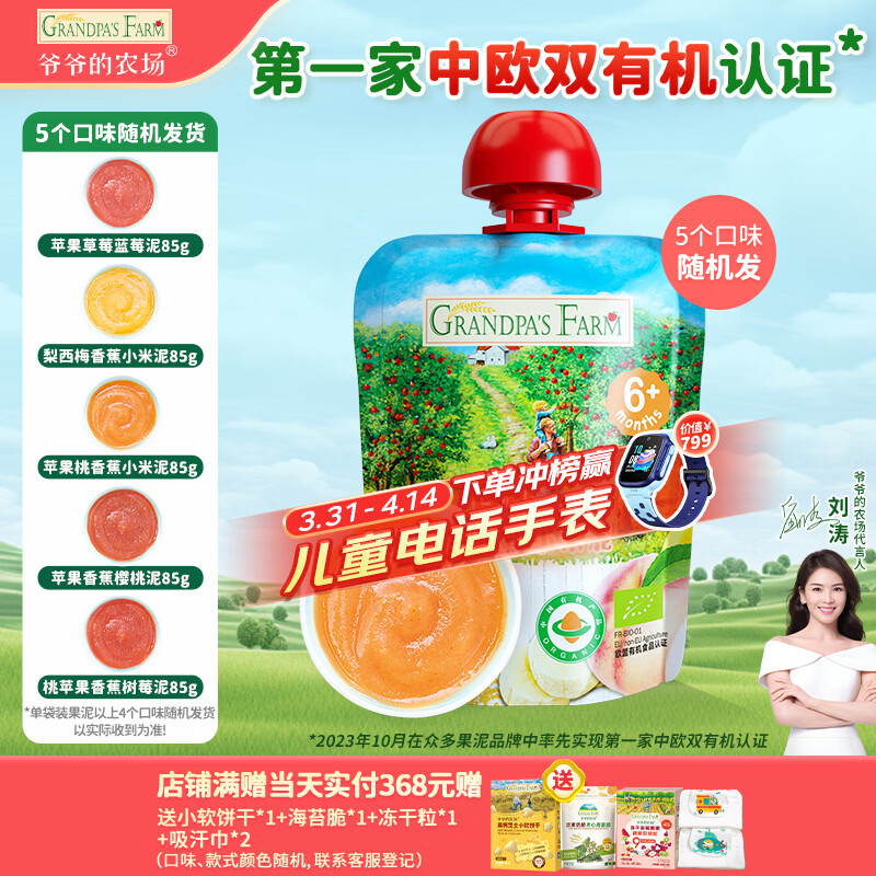 爷爷的农场有机进口水果泥儿童宝宝苹果桃香蕉小米泥85g 辅食零食口味随机