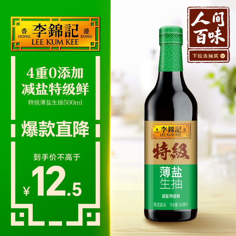 李锦记 特级薄盐生抽500ml 健康薄盐 美味更安心 减盐特级鲜 酱油 生抽