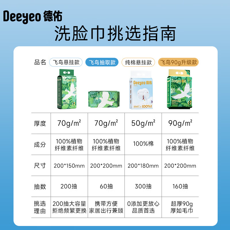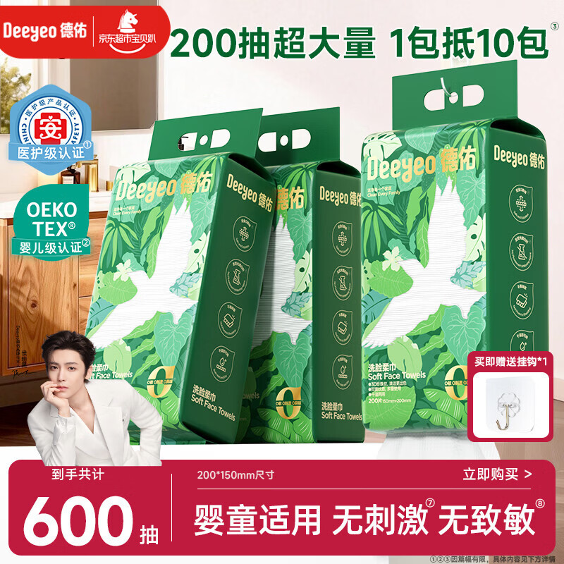 德佑悬挂式200抽*3绵柔巾洗脸巾干湿两用一次性棉柔洁面巾200*150mm