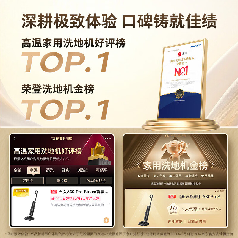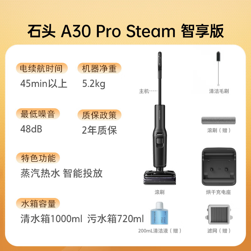 石头A30 Pro Steam智享版蒸汽洗地机【160℃蒸汽】 25000pa吸力自清洁除菌洗拖一体扫地机器人