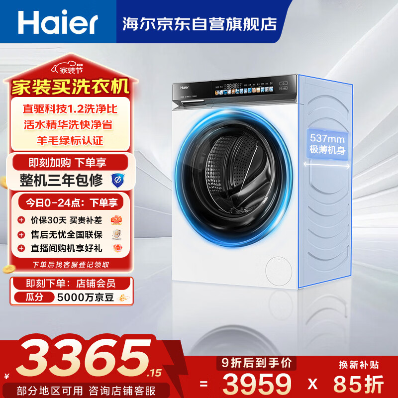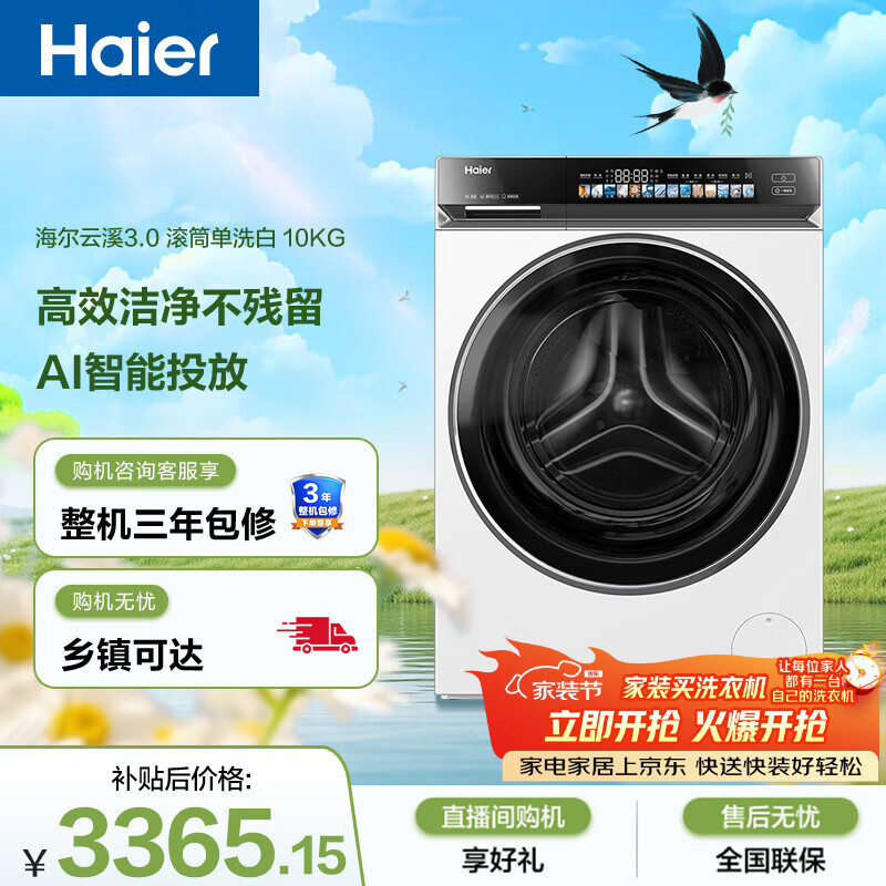 海尔(Haier)云溪3.0 全自动滚筒洗衣机白色 10KG 直驱 家电国家补贴以旧换新京东自营 XQG100-BLDE583WU1