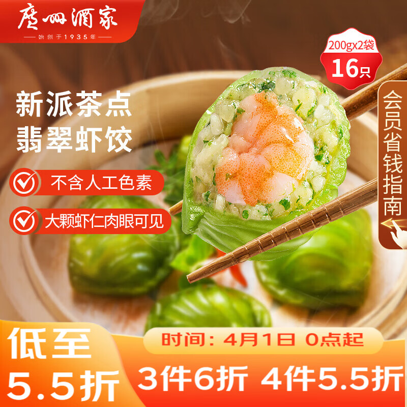 广州酒家翡翠虾饺200g*2袋 16个 早茶点心 儿童早餐 广式点心速冻开学季