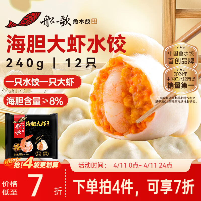 船歌鱼水饺海胆大虾水饺240g12只早餐夜宵海鲜手工早餐速食面点生鲜速冻饺子