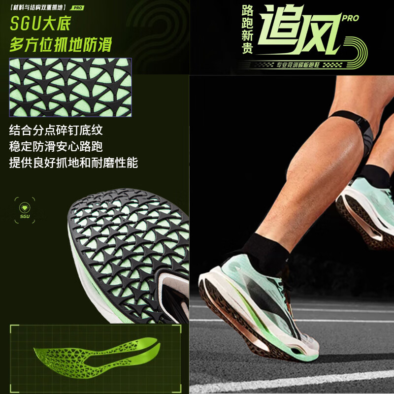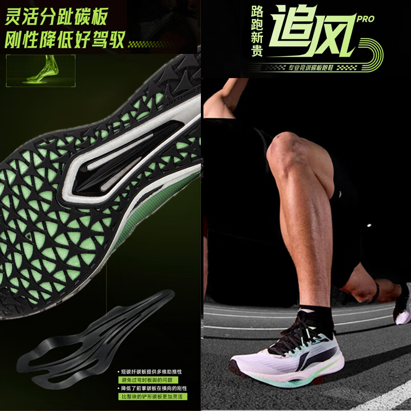 李宁追风pro|碳板跑步鞋男女鞋减震轻便透气百搭竞速专业运动鞋 白/荧青绿-1 42