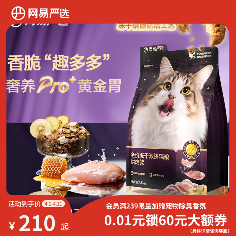 网易严选全价冻干双拼紫金烘焙猫粮 成幼猫高鲜肉护肠胃1.5kg*2