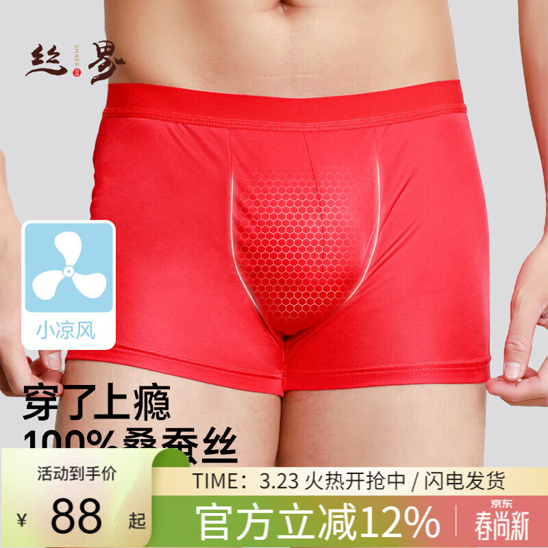 丝界真丝内裤男士桑蚕丝抑菌平角裤秋冬四角裤裤衩舒适短裤头