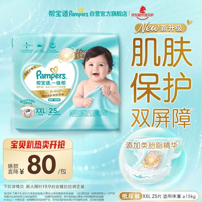 帮宝适类胎脂新一级帮新生儿婴儿防漏超薄纸尿裤XXL25尿不湿尿裤