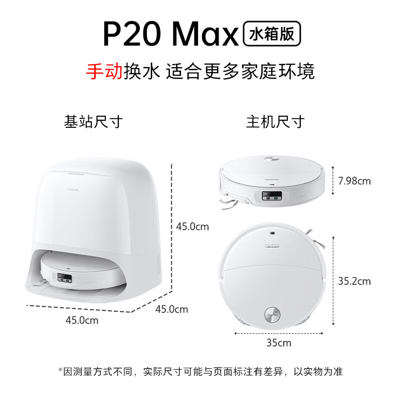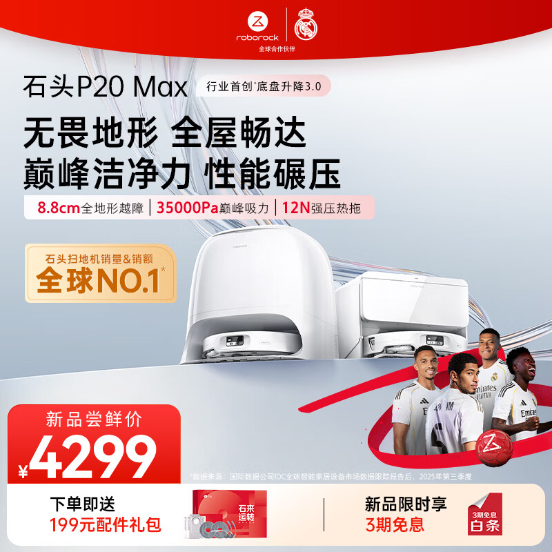 石头(roborock)扫地机器人扫拖一体 P20 Max 扫拖洗烘一体机 自动集尘热水洗拖布擦地拖地洗地机吸尘器 A2950RR