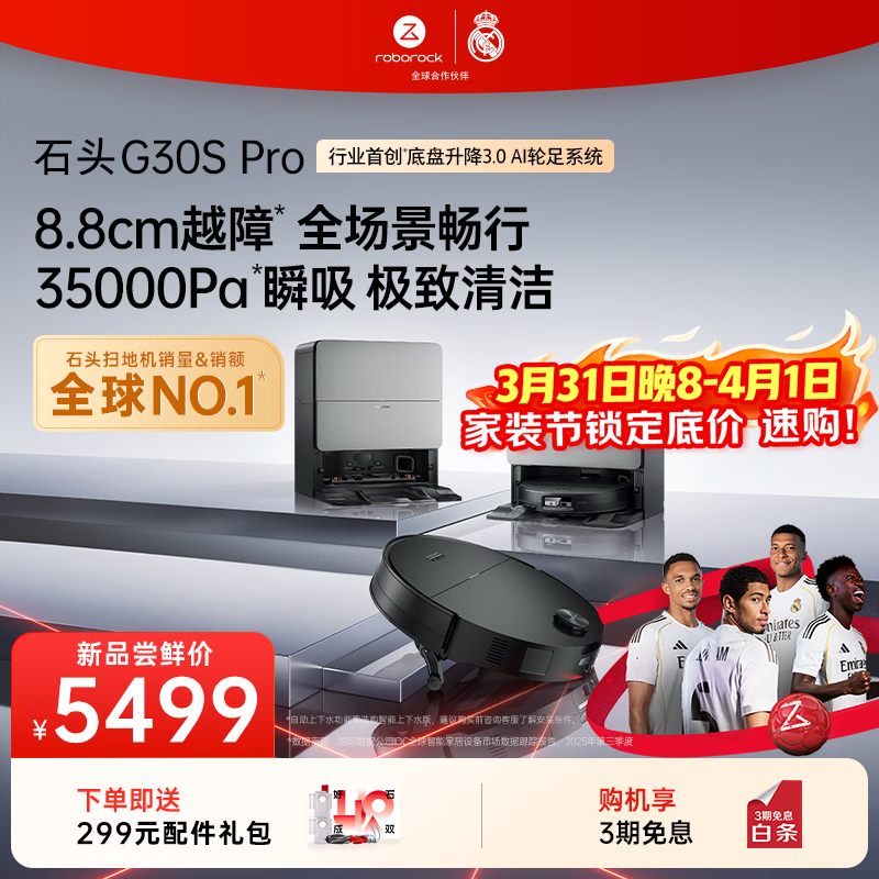 石头(roborock)扫地机器人 G30S Pro 扫拖洗烘一体机 自动集尘热水洗拖布擦地拖地洗地机吸尘器 A2780RR