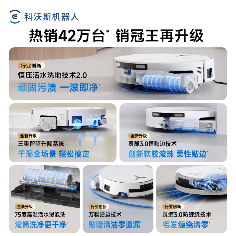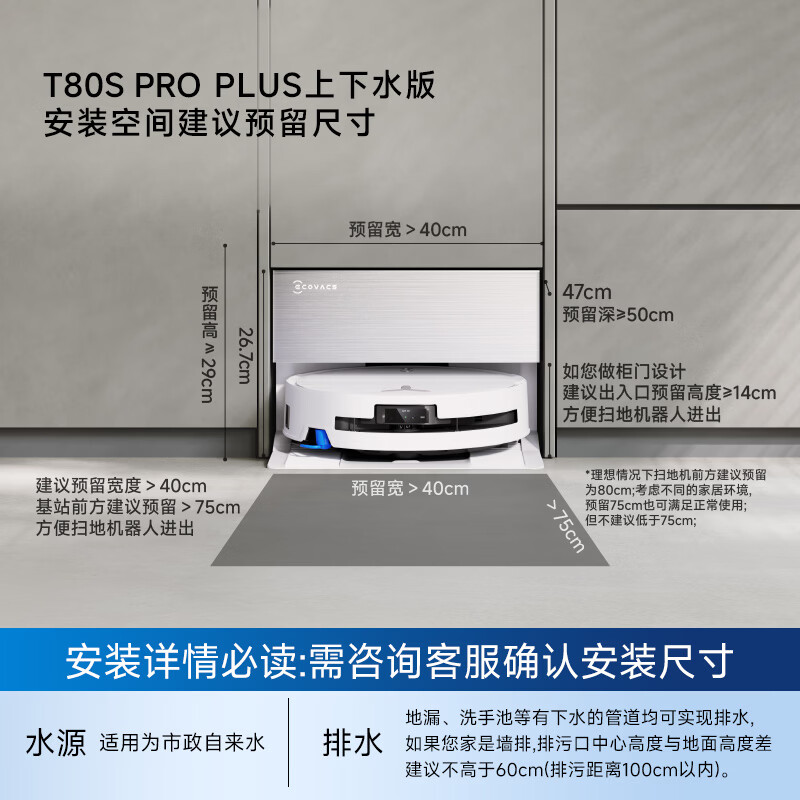 科沃斯T80S PRO PLUS扫地机器人扫拖洗烘一体自动清洗集尘滚筒洗地机器人上下水版