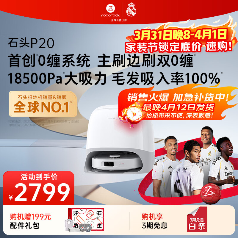 石头(roborock)扫地机器人扫拖一体 P20 扫拖洗烘一体机 自动集尘烘干补水擦地拖地洗地机吸尘器 A1690RR